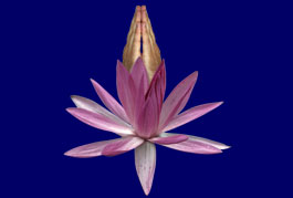 Dafür stehen die gefalteten Hände beim Gebet und die sich öffnenden Blütenblätter des Lotus deuten die Entfaltung der Seele, hin zur Ganzheit, an.